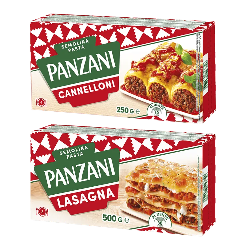 De ovenpasta’s van Panzani zullen de harten van groot en klein sneller doen slaan. De Lasagnes & Cannelloni’s van Panzani zijn perfect in een traditioneel recept met bolognesesaus of met je eigen saus voor een originele twist.